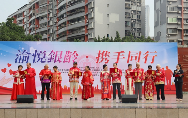 活动中,6对金婚银婚夫妇一起上台,他们重温结婚誓词,回顾难忘的岁月故事,真诚的话语感染着现场每个人。活动还依次为2024年区级养老护理员技能大赛一、二、三等奖获得者进行颁奖;为获评“2024年度优质老年食堂”的社区老年食堂进行授牌;举行了老龄慈善捐赠仪式;进行了精彩的文艺汇演。
