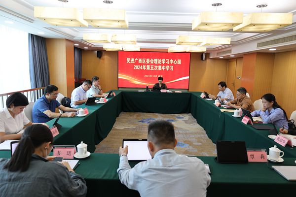 10月11日下午,民进广西区委会理论学习中心组在南宁开展2024年第五次集中学习,区委会主委杨静华主持学习,副主委黄均宁、丘映含、汤晓军参加学习。