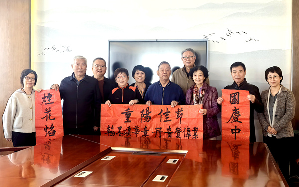 座谈会后,内蒙古民进开明画院院长刘朝侠为老领导、老会员们讲授书画艺术,老同志们共同挥毫泼墨,喜迎重阳佳节,祝福祖国繁荣昌盛。