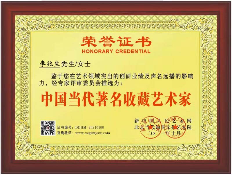 2021年3月,在第五届“中华杯” 全国诗书画印大展中,篆书作品荣获金奖。4月,在建党百年全国书画名家书法大赛中,篆书作品荣获金奖,被授予“中国百强书画名家”荣誉称号,11月份,该篆书作品被烧制成骨质瓷高档花瓶。7月份,荣获由中外文化艺术交流协会、联合国科教文组织和法国大皇宫国家美术馆联合颁发的“首届国际文艺金鹰奖”,被授予“世界文化艺术交流大使”荣誉称号,荣幸成为“世界名人堂终身会员”,个人传略和书法作品,也被法国大皇宫国家美术馆建档收藏。10月,被新中国人民艺术网和北京当代翰墨文化艺术院授予“德艺双馨艺术家”和“中国当代著名收藏艺术家”荣誉称号,个人传略和书法作品入编中国人民艺术网站。