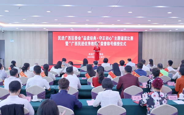 8月24日上午,民进广西区委会“品读经典·守正初心”主题诵读比赛在南宁举办。区委会主委杨静华出席并致辞,副主委黄晓娟、罗真、丘映含出席活动。活动由丘映含主持。