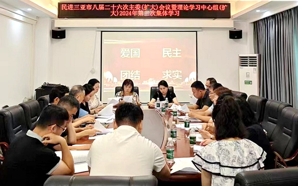 为深入学习贯彻中共二十届三中全会精神,8月1日上午,民进三亚市委会召开八届二十六次主委(扩大)会议并开展理论学习中心组2024年第三次集体学习,受毕红玲主委委托,专职副主委张海涛主持会议。