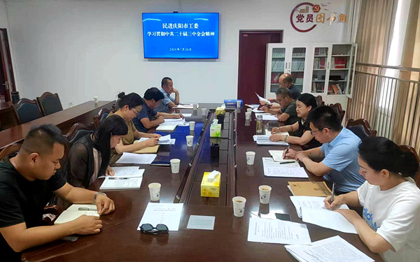 会议学习了中共二十届三中全会公报和中共中央召开的党外人士座谈会精神,学习了蔡达峰主席在民进中央理论学习中心组2024年第四次集体学习时的讲话精神,传达了中共庆阳市委对统战系统学习中共二十届三中全会精神的部署要求。会议按照市工委制定的学习方案,对全市民进各级组织学习贯彻全会精神进行了部署。