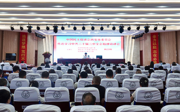 7月26日,民进西安市委会传达学习中共二十届三中全会精神宣讲会在市42中礼堂举行。民进陕西省委会副主委、西安市人大常委会副主任、民进西安市委会主委杨宗科以《深入学习宣传贯彻党的二十届三中全会精神,在进一步全面深化改革、创新推进中国式现代化西安实践中展现民进新作为》为题作辅导报告。市委会专职副主委王小玲主持宣讲会。市委会领导班子成员和各基层组织负责人及会员代表200余人参加会议。