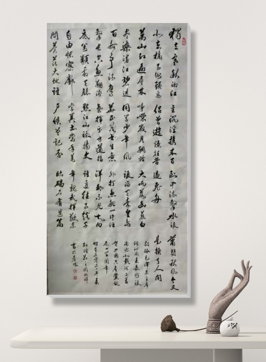 本人自青少年时期即喜好书法。从上世纪80年代初就开始自学软、硬笔书法。先后临习过欧、颜、柳、赵及今人启功、田英章等的楷书,《兰亭序》、《圣教序》、《洛神赋》的行书,《曹全碑》、《张迁碑》的隶书;《草诀歌》、《书谱》的草书,《驿山碑》的篆书,苏、黄、米、蔡、唐寅、王铎等名家法帖,也学过今人如启功、杨再春、田氏兄弟等书法,对篆隶楷行草书均有涉猎,尤擅小行草书法。