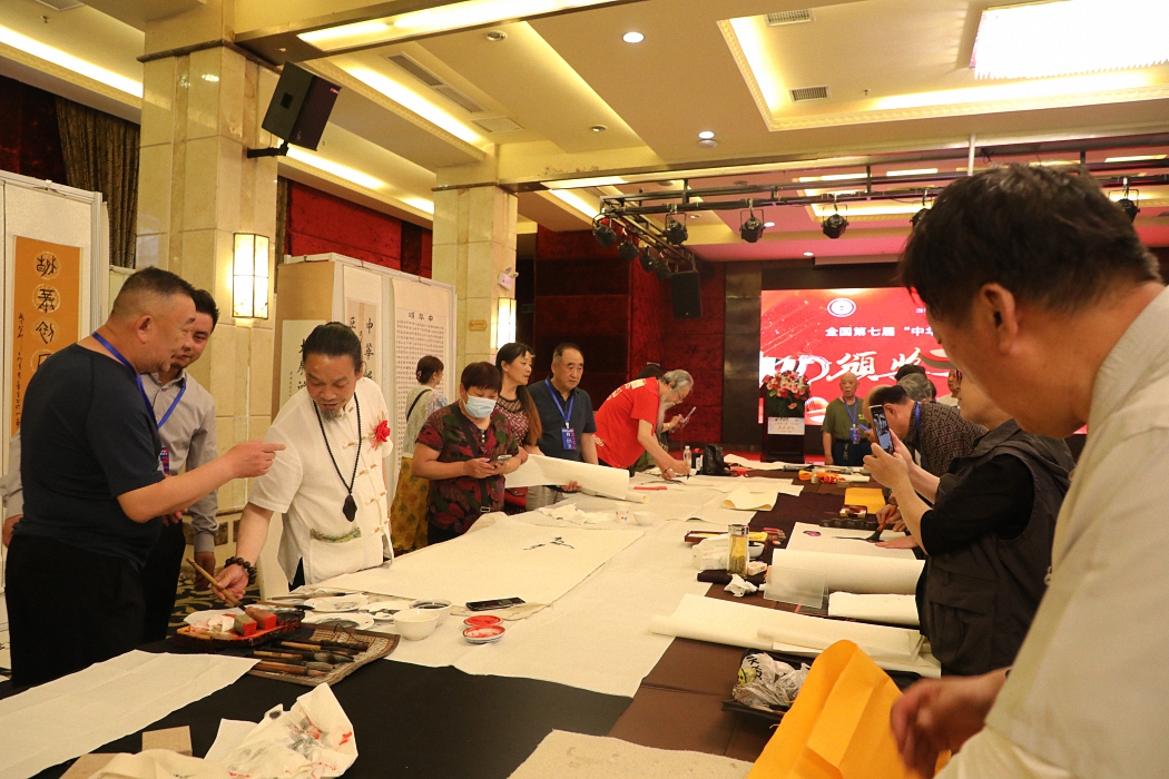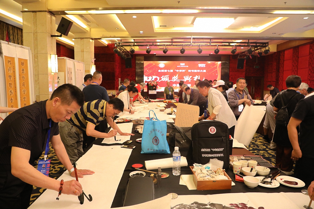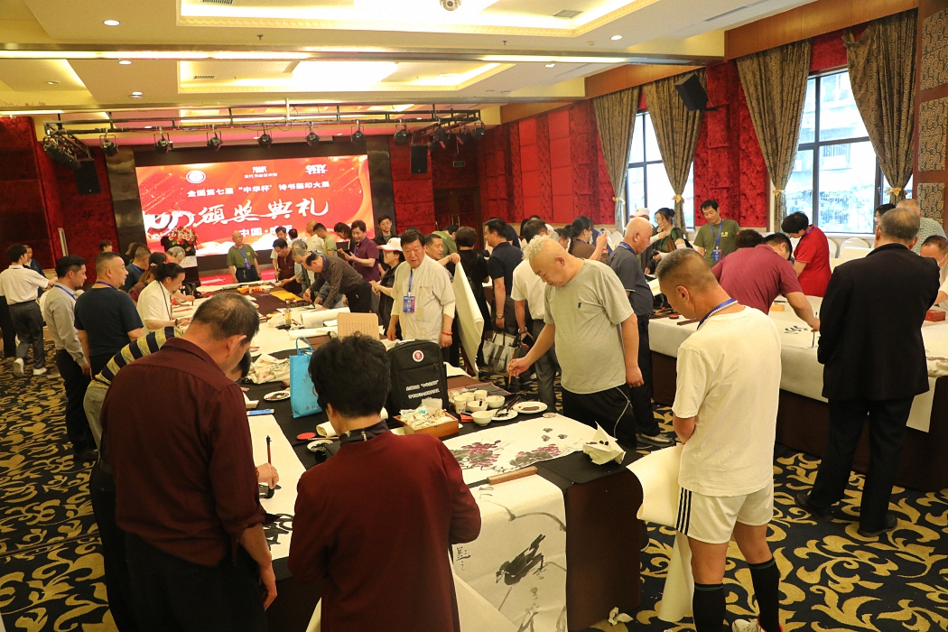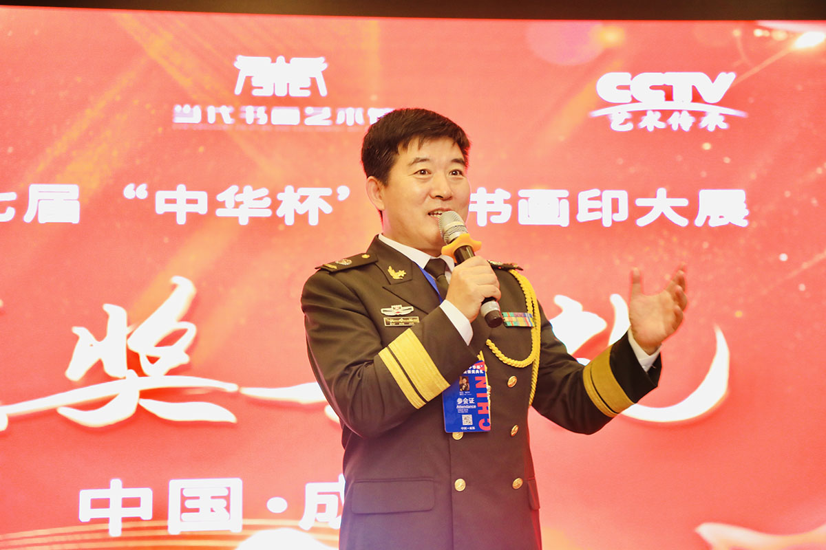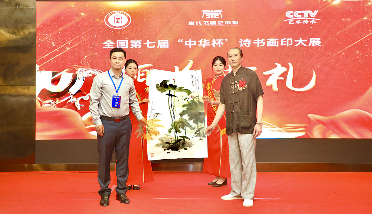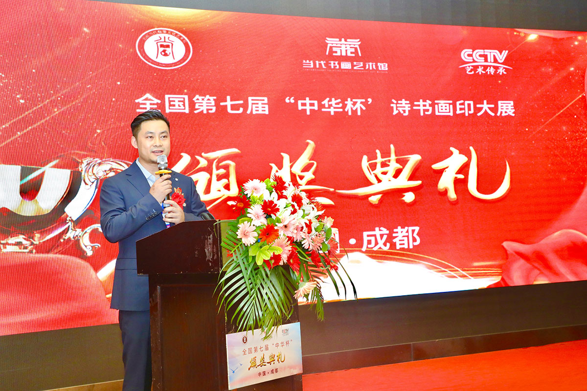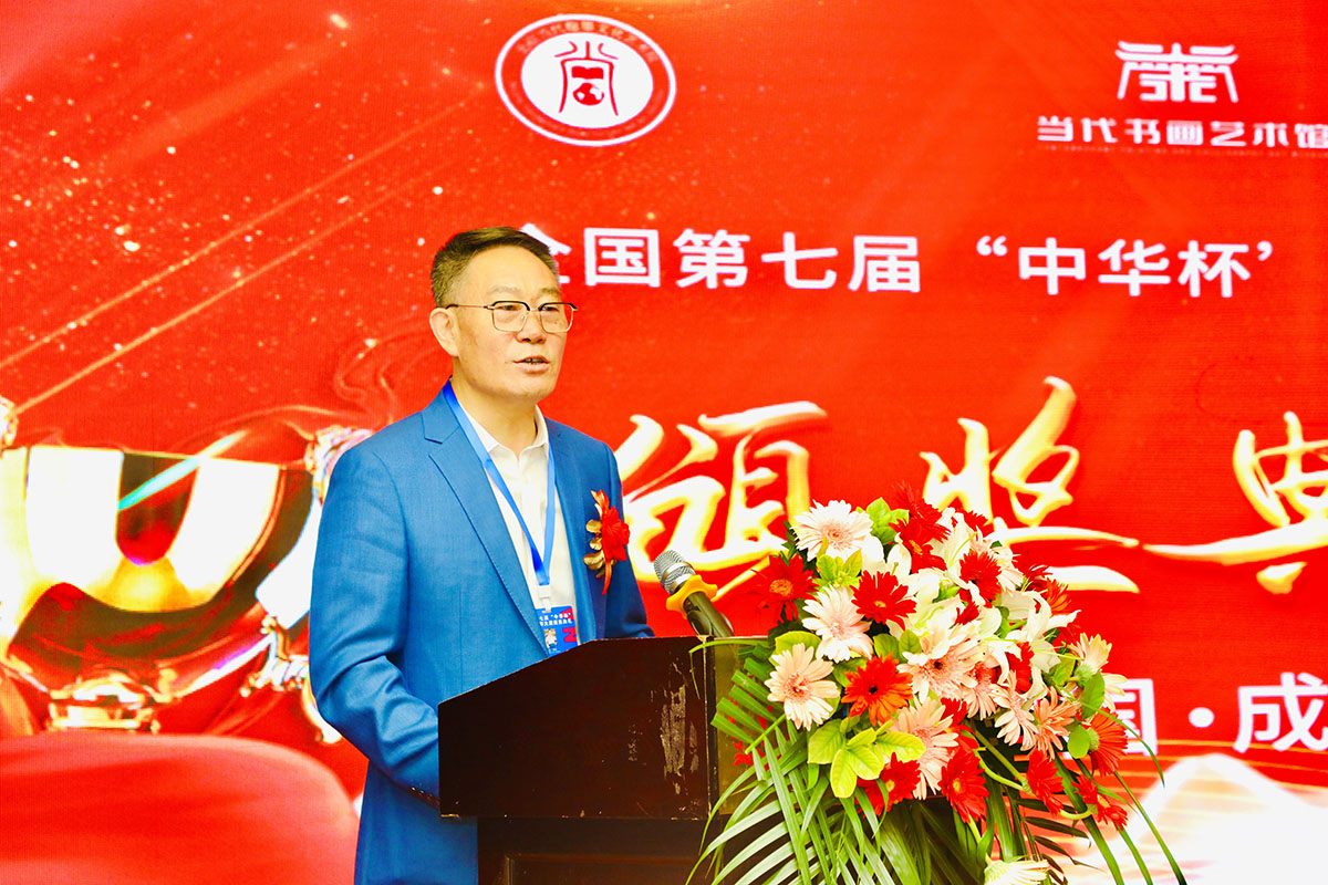新时代新呼唤,新征程新呐喊。为进一步弘扬中华优秀传统文化,坚定文化自信,彰显文化力量,推动文化繁荣,实现中华民族伟大复兴“中国梦”;为进一步讴歌中国共产党带领全国人民建设新中国的丰功伟绩,展现中华民族的辉煌巨变,书写绘就中华儿女追求幸福、逐梦奋斗的光辉历程,激励全党、全社会不忘初心、牢记使命,坚定理想信念,踔厉奋发,勇毅前行。5月20日由北京当代翰墨文化艺术院举办全国第七届“中华杯”诗书画印大展颁奖典礼在中国成都隆重开幕。“中华杯”发起人、北京当代翰墨文化艺术院执行院长罗陌雨、北京当代翰墨文化艺术院艺术顾问高启辉、原国防大学研究生院博士生政委,北京当代翰墨艺术院文化顾问林迪发表讲话和致辞。本次展览共征集书画、诗词、工艺品等共收到全国各地参展作者的有效投稿6782件,其中书法作品占总来稿量的51%、绘画作品占总来稿量的35%、篆刻作品占总来稿量的8%、诗歌作品占总来稿量的6%,而中国书法家协会、中国美术家协会、中国诗歌学会、中华诗词学会及省级书协、美协、作协会员投稿占到来稿作者的五分之一,彰显了大展的专业性和权威性。