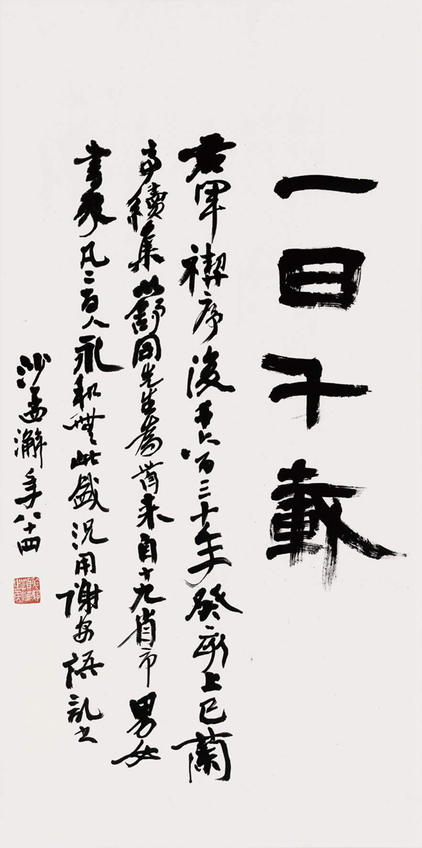 《礼记·中庸》有云:“君子尊德性而道问学,致广大而尽精微。”沙孟海作为20世纪中国书坛极具代表性的书家、学者、教育家,他深谙语言文字、文史、考古诸学,在创作、研究和教育的各领域中,以“尽精微”深耕传统,以“致广大”来展现书法作为中华传统文化精髓的核心价值,实现艺理相通,品学相通。在《中国新文艺大系书法集导言》中沙孟海写道:“我们今天从事书法篆刻艺术,并不单纯为了涵养胸襟,陶冶性灵,更重要的是为了使书法篆刻艺术及其理论符合国家、民族和时代的需要,更好地为人民服务,为社会主义服务。同时,要使我们这门古老而又为现代人热爱的书法篆刻艺术发扬光大,使之顺着时代前进的潮流,向更高更新的方向发展。不仅仅是才、学问题,更重要的是识,即需要认真学习辩证唯物主义和历史唯物主义,用它来指导书法篆刻的理论研究。”为天地立心,为往圣继绝学,沙孟海正是以这样的使命精神领航现代书坛。
