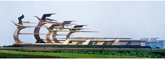 正是这种多变和灵活,才有千姿百态的十二生肖和神情各异的大熊猫,正是这种柔韧而又果断有力,才有了《母与子》的嬉戏和《五云九如》的凌厉。无论是雕塑、绘画还是工艺陶瓷作品,无不渗透着韩美林形的特质。