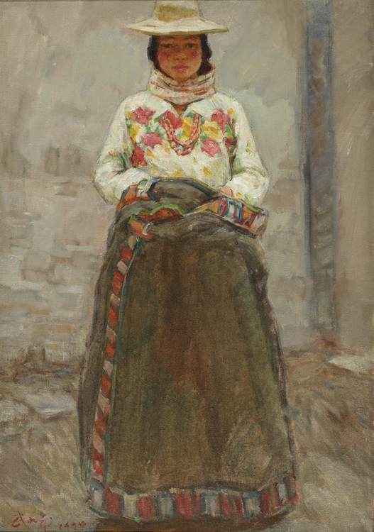 武老师上课感情充沛,神采英发。给我们宣讲罗工柳先生的教学思想:“学会了再变”。阐释现实主义油画的基本原理。鼓励我们要用色彩造形,为了不失造型的严谨,用色要把握大关系,但是在大块色彩中,色阶的变化要微妙。在塑造形象时针对我们用色简单的倾向,一再强调调色的时候一点一点的求取色阶,放在形体结构上使冷暖对比和素描关系吻合,避免生硬,造型松散。有幸在武老师指导下画了三幅人物写生:《老民兵半身像》、《坐着的朝鲜族姑娘》、《站在壁毯前的维族姑娘》。武老师自己亲笔示范。那种耐心、循循善诱、慈祥可亲的神态,记忆犹新至今不能忘怀。当《维族姑娘》作业完成后,武老师为了鼓励我,把它推荐到学院陈列馆长期展出。1966年红色风暴骤起,陈列馆被砸烂,我的这件留校习作也被人用匕首把人物的脸部捅了一个大口子。