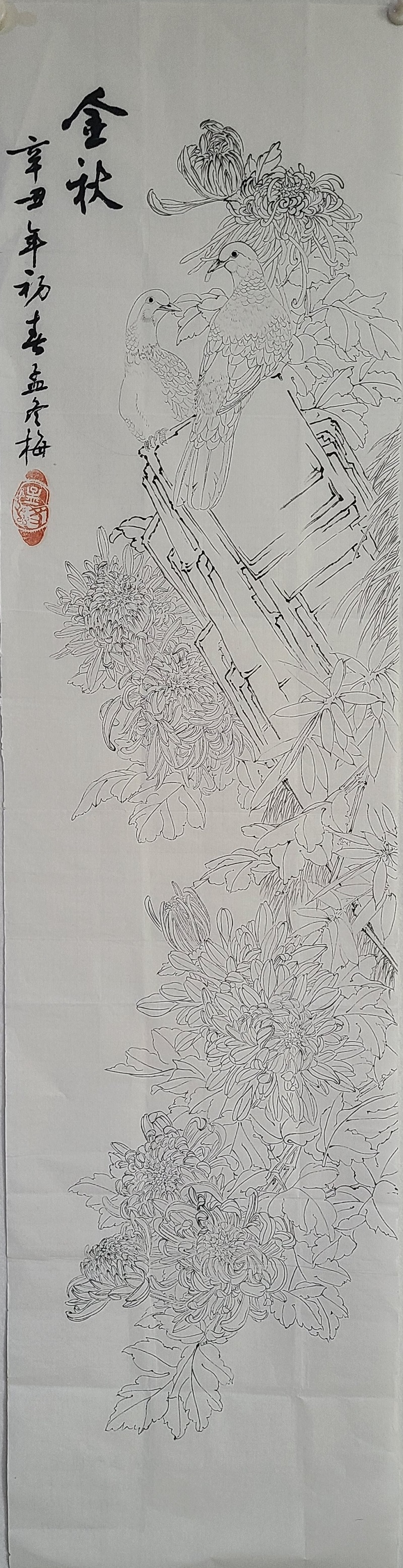 孟冬梅工笔白描作品