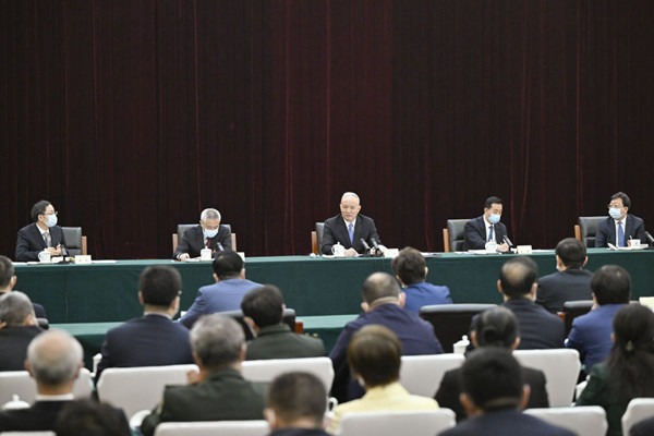 3月6日,中共中央政治局常委、中央办公厅主任丁薛祥看望出席全国政协十四届一次会议的环境资源界委员并参加讨论。新华社记者 谢环驰 摄