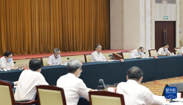 7月5日,中共中央统战部在北京召开调研协商座谈会,就有关民主党派中央和全国工商联开展的“统筹推进碳达峰碳中和”调研成果进行协商。中共中央政治局常委、全国政协主席汪洋出席会议并讲话。新华社记者 刘卫兵 摄