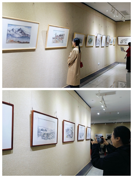 10月26日上午,上饶市政协副主席、民进上饶市委会主委张庆国带领市委会机关干部来到市文化馆三楼,参观“诗画生活录”——民进会员胡黎明写生作品展,此次展览将持续至11月13日。