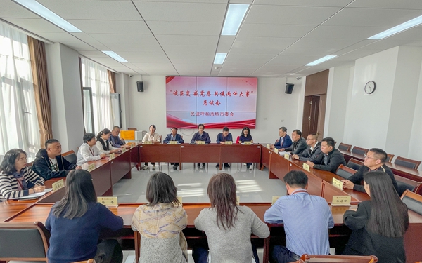 为庆祝新中国成立75周年,10月24日,民进呼和浩特市委会召开“谈巨变、感党恩、共促两件大事”恳谈会。民进内蒙古区委会副主委、呼和浩特市政协副主席、民进呼和浩特市委会主委索英俊主持会议,市委会副主委李文平、南文廷、张珍、白云参加会议。