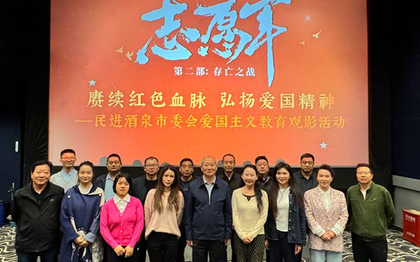 10月13日下午,民进酒泉市委会开展“赓续红色血脉、弘扬爱国精神”主题观影活动。酒泉市政协副主席、民进酒泉市委会主委柳渊参加活动。