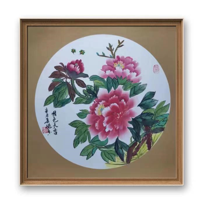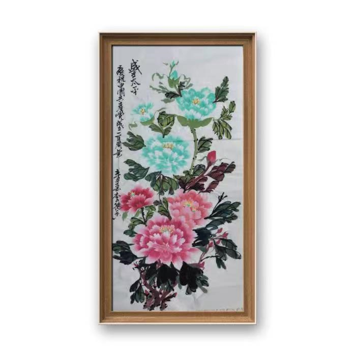 “春去花还在”,以牡丹入画,让盛开的牡丹花,定格成宣纸上永恒的美景,随时带给你视觉上的享受。硕大的花冠,一团团,一簇簇,热烈奔放。画面的色彩清新流畅,每朵牡丹如同一簇簇火苗,变动升腾,在生长动态之中带来永不消逝的希望和兴奋。牡丹花是繁荣昌盛的象征,表达了作者对盛世中国的赞美之情。