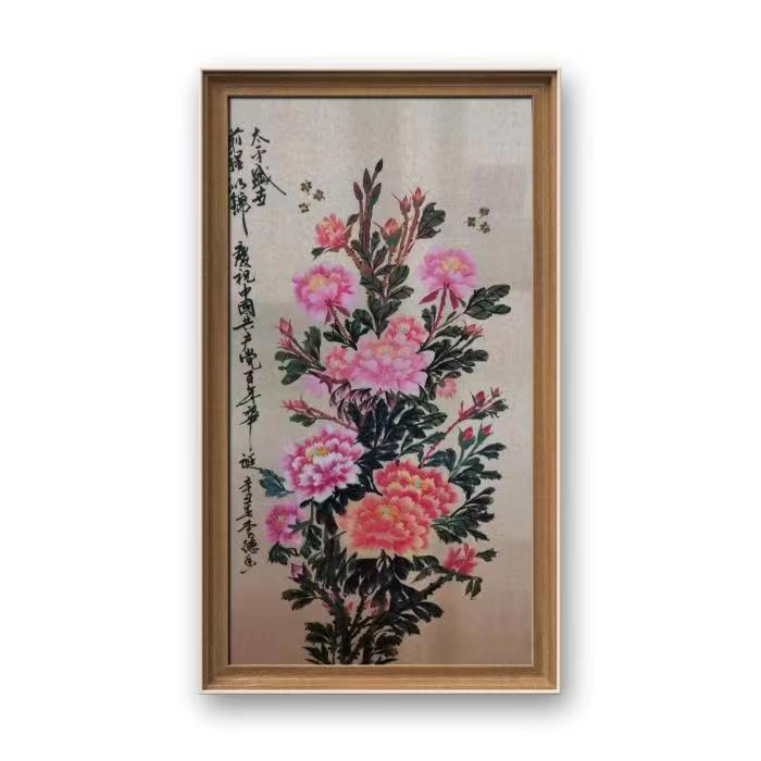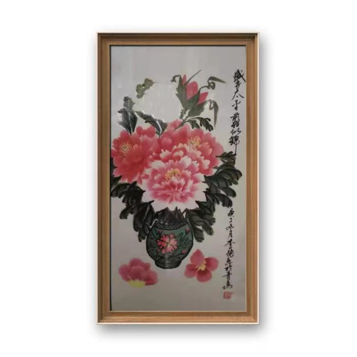 牡丹花色鲜明可爱又鲜艳,花朵鲜艳大气。瓶子是藏有无尽甘露宝藏的吉祥物,“瓶”字发音和“平”相同,是和平、平安的意思。中国人祈求四季平安,“瓶”的谐音与此美好愿望正好契合。