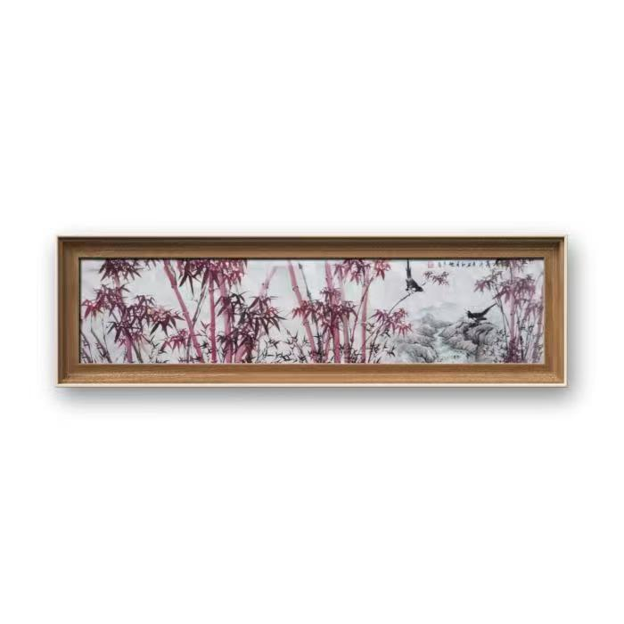 姿干挺拔修长,给人长身玉立之感。竹叶丰润,昭示着勃勃生机。画作布局疏密有致,结构严谨,笔法细腻,神足韵高。中国竹文化代表的是一种做人的精神风貌,竹子由嫩笋破土而出,逐节上升,开枝发叶,象征“有志有节”。