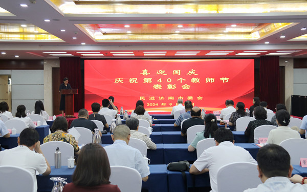 为进一步弘扬教育家精神和尊师重教的社会风尚,宣传民进会员教书育人的优秀事迹,9月8日,民进济南市委会举办“喜迎国庆·庆祝第40个教师节表彰会暨‘我身边的先进’宣讲”活动。市委会主委潘荣庆出席活动并讲话,副主委叶霖、王洪新、赵华,秘书长刘海萍参加。