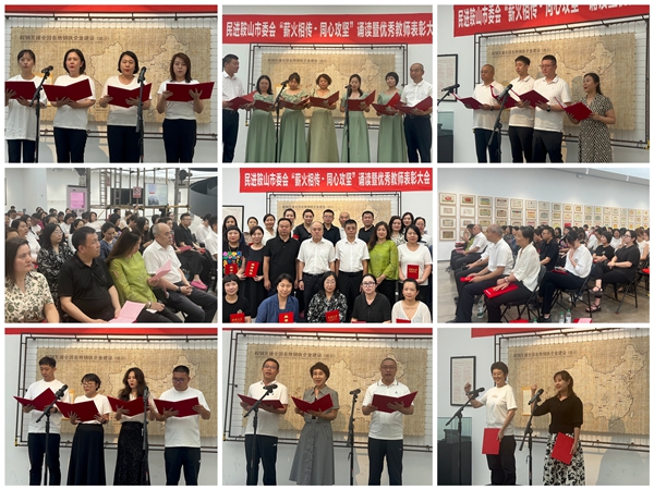 为庆祝中华人民共和国成立75周年、人民政协成立75周年及第40个教师节,民进鞍山市委会于8月28日在“钢·美术馆”举办“薪火相传·同心攻坚”诵读暨优秀教师表彰大会。市政协副主席、民进鞍山市委会主委高旭升,市委会副主委王辉、白威、李霜出席活动。