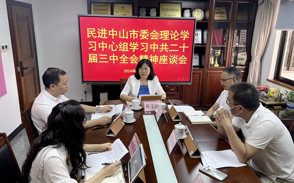 8月16日,民进中山市委会理论学习中心组召开学习贯彻中共二十届三中全会精神分享会。市委会主委陈玉琼,副主委胡子冠、叶裕华、杨国明,机关干部参加会议。
