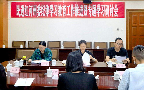 8月13日,民进红河州委会在蒙自召开纪律学习教育专题学习研讨会,会议由民进红河州委会专职副主委雷要雯主持,州委会班子成员、各地方组织和州委直属支部负责人在现场或以视频方式参加会议。
