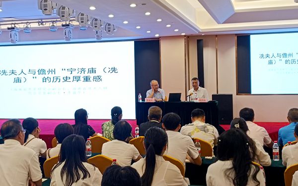 活动邀请海南省苏学研究会副会长、海南省冼夫人研究会名誉副会长、民盟儋州市委会原主委李盛华作《冼夫人与儋州“宁济庙(冼庙)”的历史厚重感》专题讲座。李盛华通过讲述北宋大文豪苏东坡祭拜冼庙、南宋宰相李光修葺冼庙并亲撰《冼夫人庙碑》以及南宋高宗皇帝赵构亲笔御题为儋州的宁济庙题写匾额、庙诰等故事,阐明了冼夫人文化对儋州以及海南的重要影响。