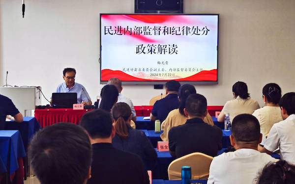 7月22日下午,民进甘肃省委会副主委、内部监督委员会主任梅元贵在甘肃社会主义学院为民进长春市委会2024年骨干会员培训班作“民进内部监督和纪律处分政策解读”专题讲座。省委会组织部副部长曾瑞、市委会专职副主委邹德涛及骨干会员30余人参加培训。
