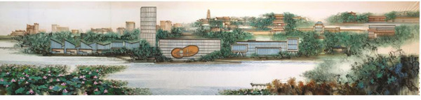 嘉定是汪家芳的家乡。孩提时每年寒暑假,父亲总会把他送到嘉定。也因而,汪家芳创作这幅画,怀有一种特别的自豪感,特意以彰显城市间的山山水水,映照经历日新月异发展之后的嘉定新城远香文化源。他坦言想让观众透过画面之“景”,直入画面主旨之“本”——人民城市为人民,把城市最好的资源留给人民,为人民提供和谐安详的幸福环境。在汪家芳看来,人们需要美丽景观来滋养心灵,而生活惬意悠闲,激发向善向上的动力,正是人民城市理念的生动写照。