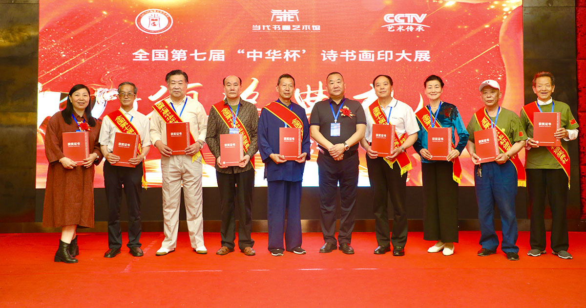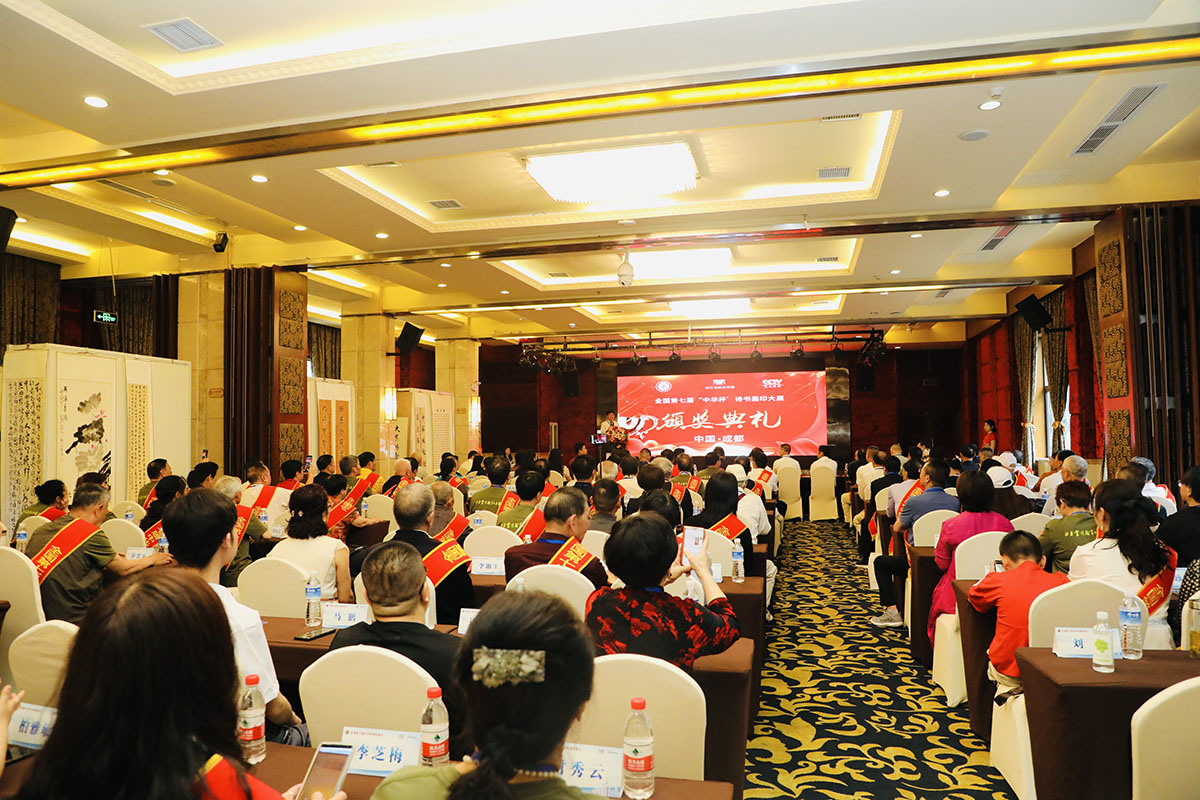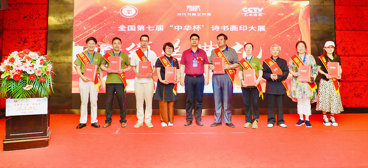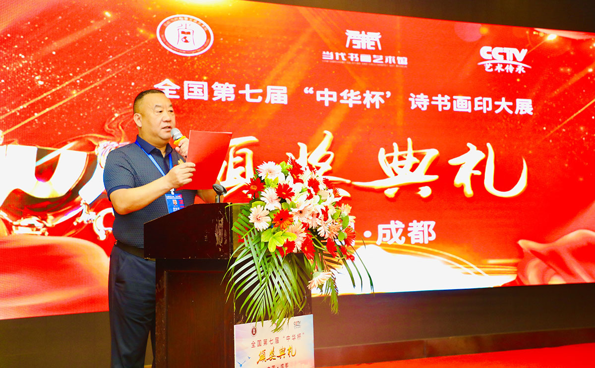 新时代新呼唤,新征程新呐喊。为进一步弘扬中华优秀传统文化,坚定文化自信,彰显文化力量,推动文化繁荣,实现中华民族伟大复兴“中国梦”;为进一步讴歌中国共产党带领全国人民建设新中国的丰功伟绩,展现中华民族的辉煌巨变,书写绘就中华儿女追求幸福、逐梦奋斗的光辉历程,激励全党、全社会不忘初心、牢记使命,坚定理想信念,踔厉奋发,勇毅前行。5月20日由北京当代翰墨文化艺术院举办全国第七届“中华杯”诗书画印大展颁奖典礼在中国成都隆重开幕。“中华杯”发起人、北京当代翰墨文化艺术院执行院长罗陌雨、北京当代翰墨文化艺术院艺术顾问高启辉、原国防大学研究生院博士生政委,北京当代翰墨艺术院文化顾问林迪发表讲话和致辞。本次展览共征集书画、诗词、工艺品等共收到全国各地参展作者的有效投稿6782件,其中书法作品占总来稿量的51%、绘画作品占总来稿量的35%、篆刻作品占总来稿量的8%、诗歌作品占总来稿量的6%,而中国书法家协会、中国美术家协会、中国诗歌学会、中华诗词学会及省级书协、美协、作协会员投稿占到来稿作者的五分之一,彰显了大展的专业性和权威性。
