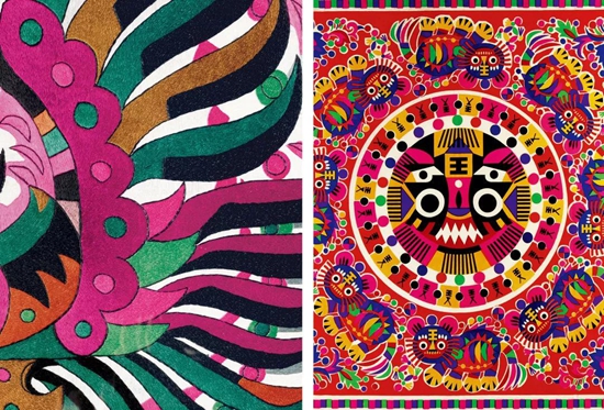 韩美林的色是大胆朴拙而又雅俗共赏的。韩美林用色艳丽,更多地是来自民间美术的色彩,但艳而不俗。在色彩搭配上,老百姓俗话讲的“红绿配,赛狗屁”,意思是红绿搭配土气、俗气,没有美感。但在韩美林的作品中,红绿搭配的时候很多,给人的感觉却完全不是这样,仔细分析,是韩美林在搭配中巧妙地处理了颜色之间的位置、面积、明暗等。