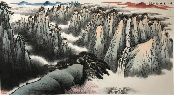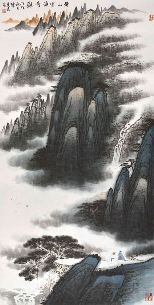 从陈廷友近来专写的黄山图看,他已经走进黄山,初歩建树起具有他个人画貌的水墨黄山艺术。观他的黄山图如梦如幻,正如军旅诗人李中华诗云“奇峰幽壑挂飞泉,溪水淙淙林海喧;墨色蒙蒙烟雾起,云山深处住神仙。”