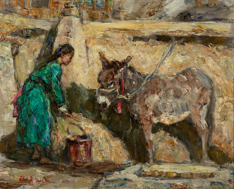 生活之根积累了奠定了和农民息息相通的审美习性。在他的眼里劳动者是美的,乡间的山山水水是美的,在他的油画作品中,特别倾心于抓住自己感兴趣而唤起美感的瞬间。含蓄地言有尽而意无穷地透出自己的心境和感情。