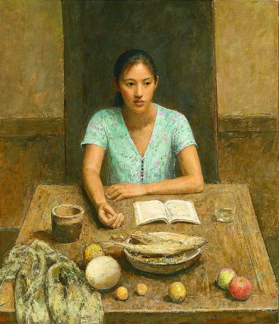 品读过这些作品后,我的第一观感,竟然是这几年一个被文艺青年们用滥的词:岁月静好。是的,这七位画家提供的40余幅作品,可以归纳为是在描绘静静的人,静静的景,静静的物,静静的心情,正如朱春林的一幅作品的名字《静静的时光》。对这七位油画家来说,“万物兴歇皆自得”,他们始终保有一颗静好之心。这是一种难得的心境,无此心境,实难创造出一种古典之美。古典之美的极境,是德国艺术史家、人类学家温格尔曼总结的“高贵的单纯,静穆的伟大。”德国哲学家黑格尔在评价古希腊艺术时,也有相似的表述。而在中国明清画论中也极力主张“画贵有静气”。看来古今中外的古典艺术,确实有某种共同追求。人类生活本身即营造出古典之美,静静的人,静静的景,静静的物,流淌过静静的时光。那些东西,那些时刻,那些心绪,或许当时只是短暂瞬间,但一经沉淀,便成永恒。用古典主义的美学态度来描绘生命中静静的时光,这是一种超然的艺术精神,是人类意识深处的需求。对于静好的东西,须古典地表现:既静好,且古典,必超然。